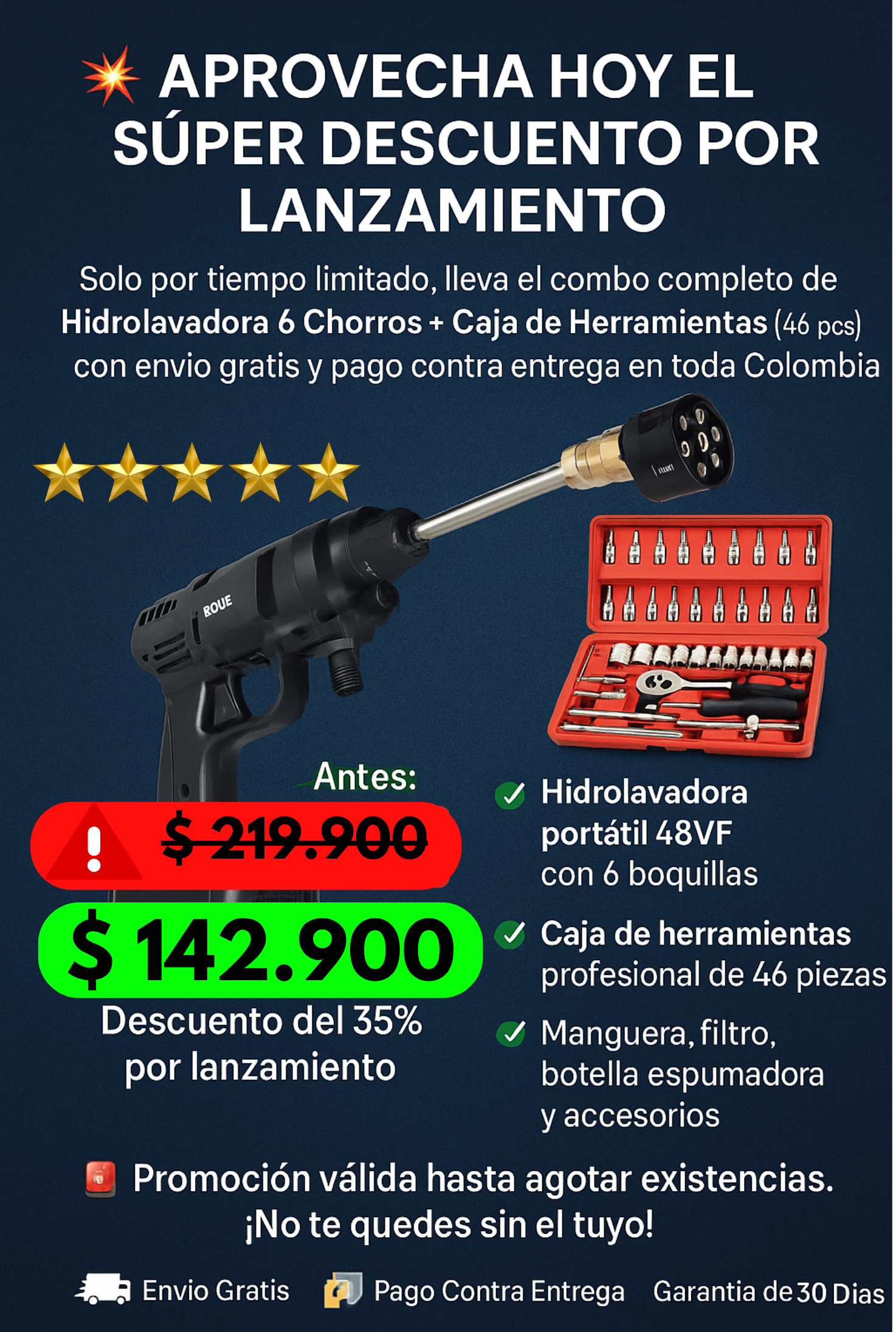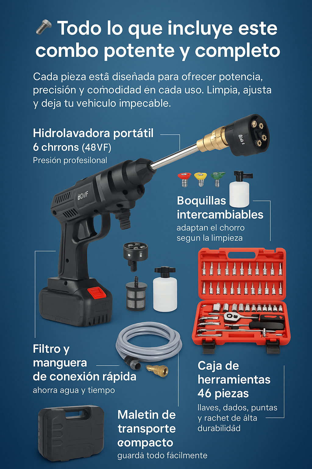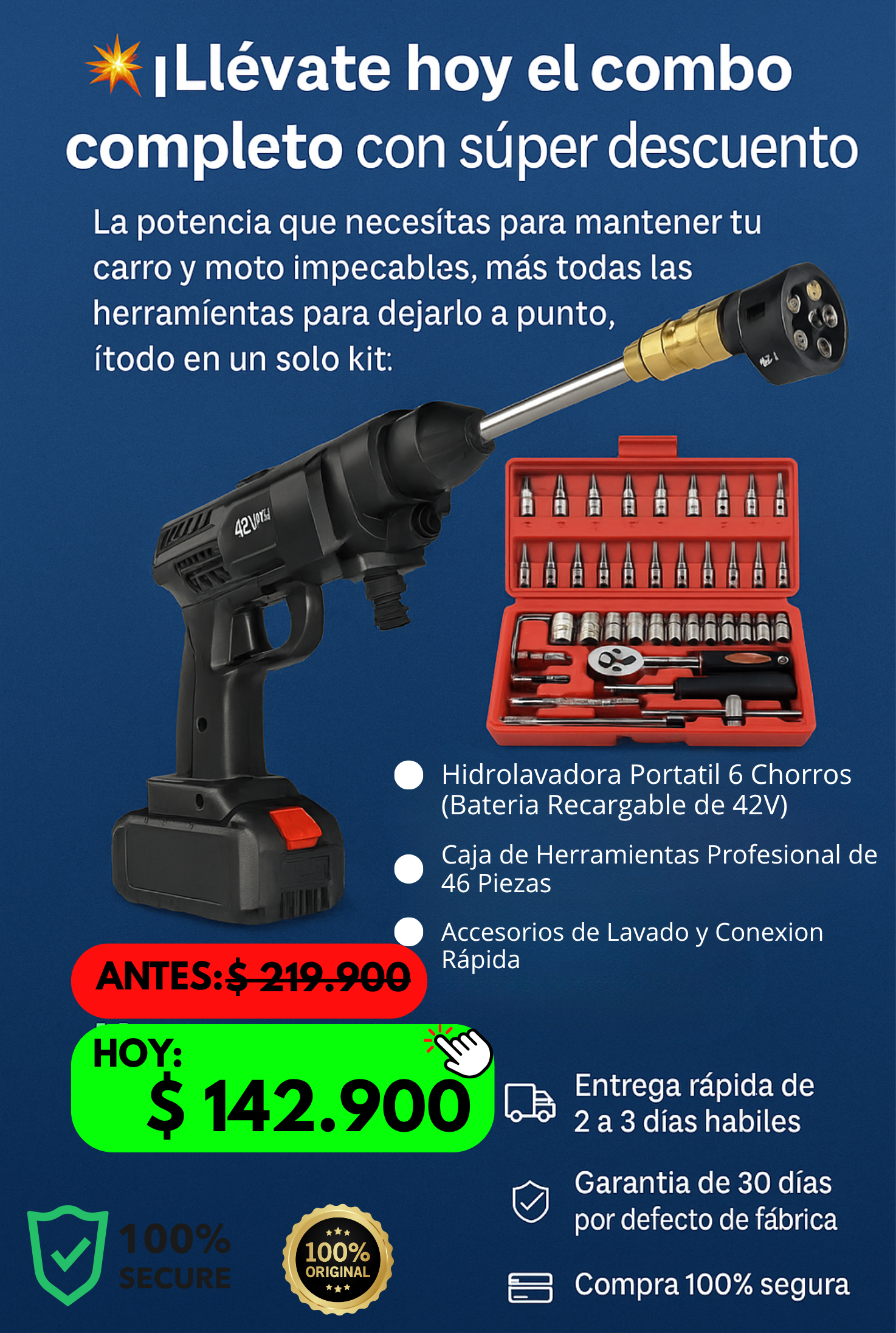 "Llegó rápido y con todos los accesorios. La presión es brutal y la caja me sirvió para ajustar detalles del carro"