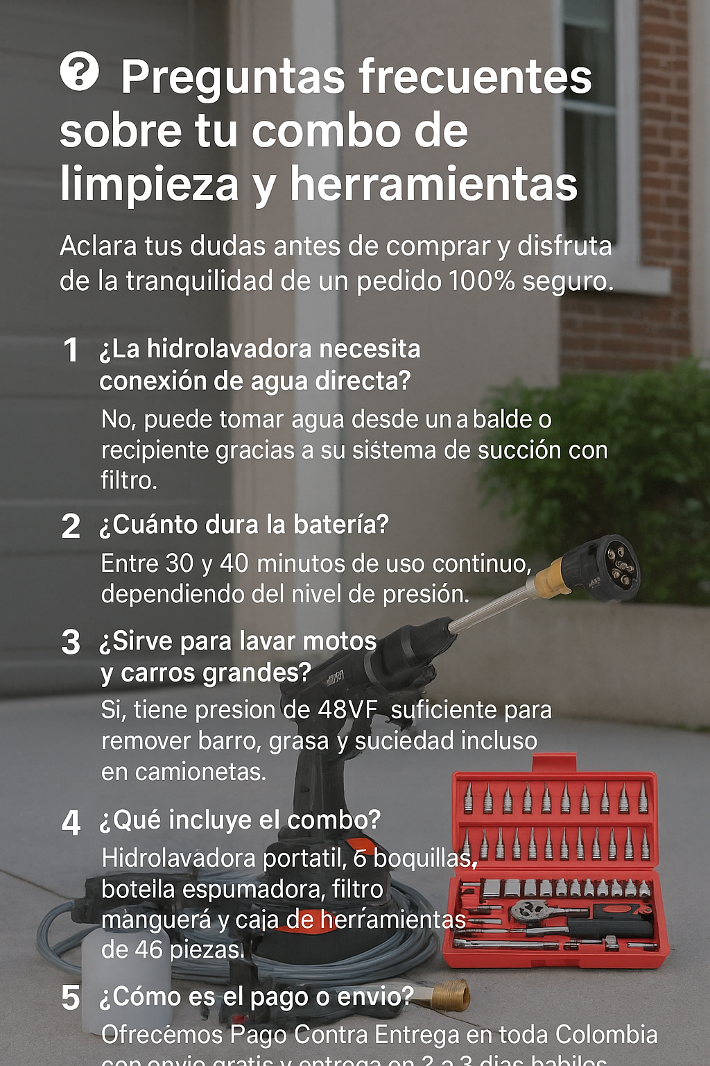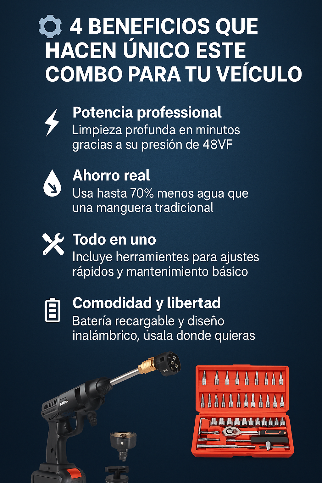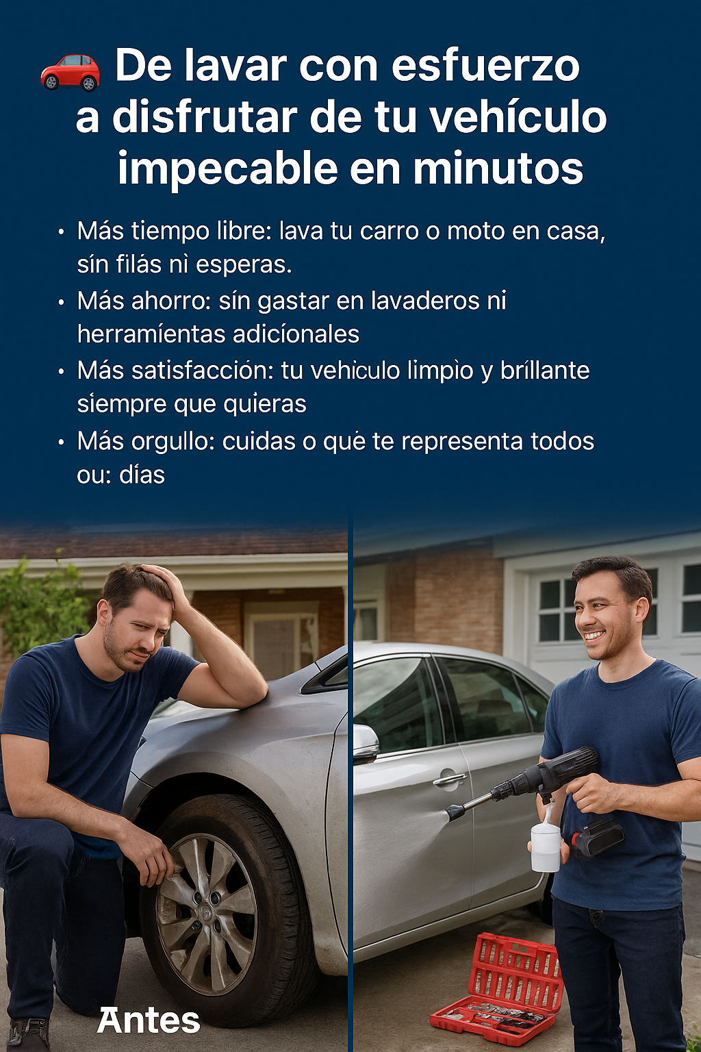 “El envío llegó en 3 días exactos. Limpio mi moto cada semana y la presión es brutal”