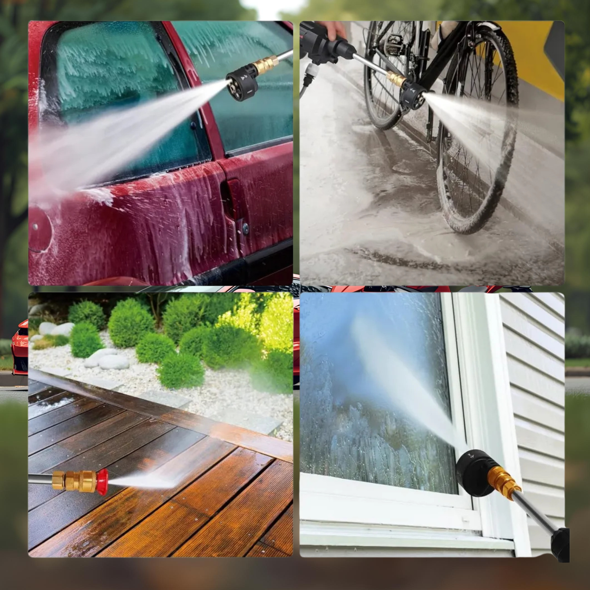 "Se arma en segundos, presión pareja y accesorios útiles. La caja trae lo necesario para ajustes rápidos."
