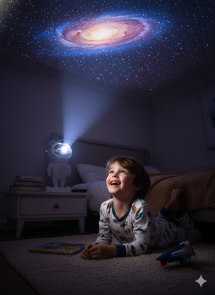 "Me encantó como decoración también: parece un astronauta de juguete, pero proyecta un universo completo. La cabeza se mueve, el mando es fácil, excelente para ambientar y que los peques se calmen antes de dormir."